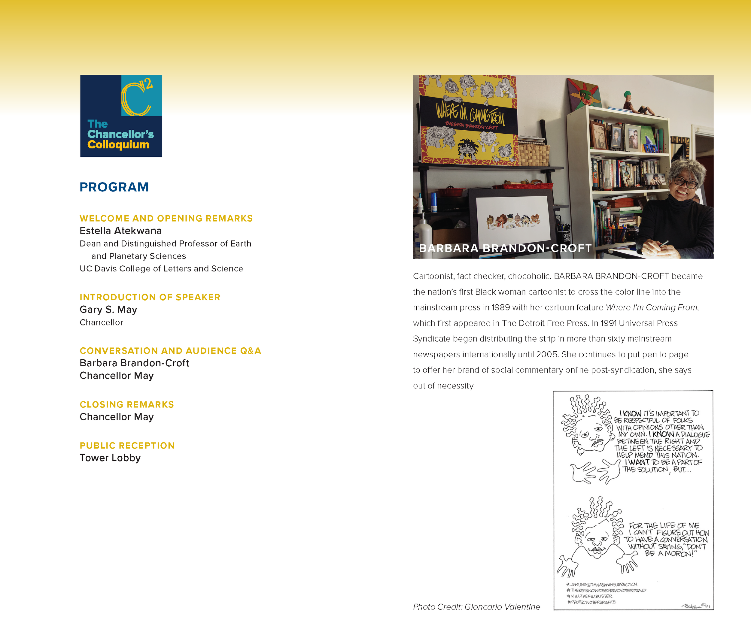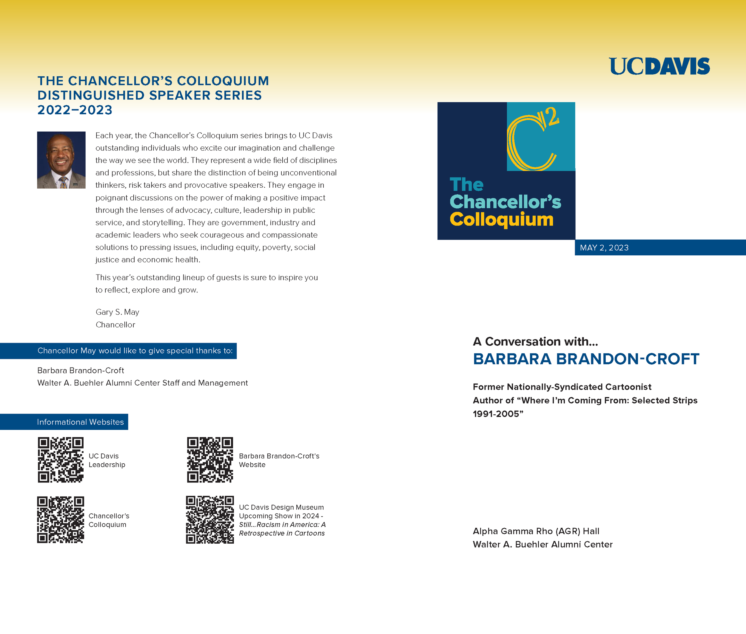 October 16, 2022, cartoonists Barbara Brandon-Croft, Gwen Muranaka and Angelo Lopez had a talk on their cartoons, the importance of community newspapers and the importance of history in the African American and Japanese American communities.